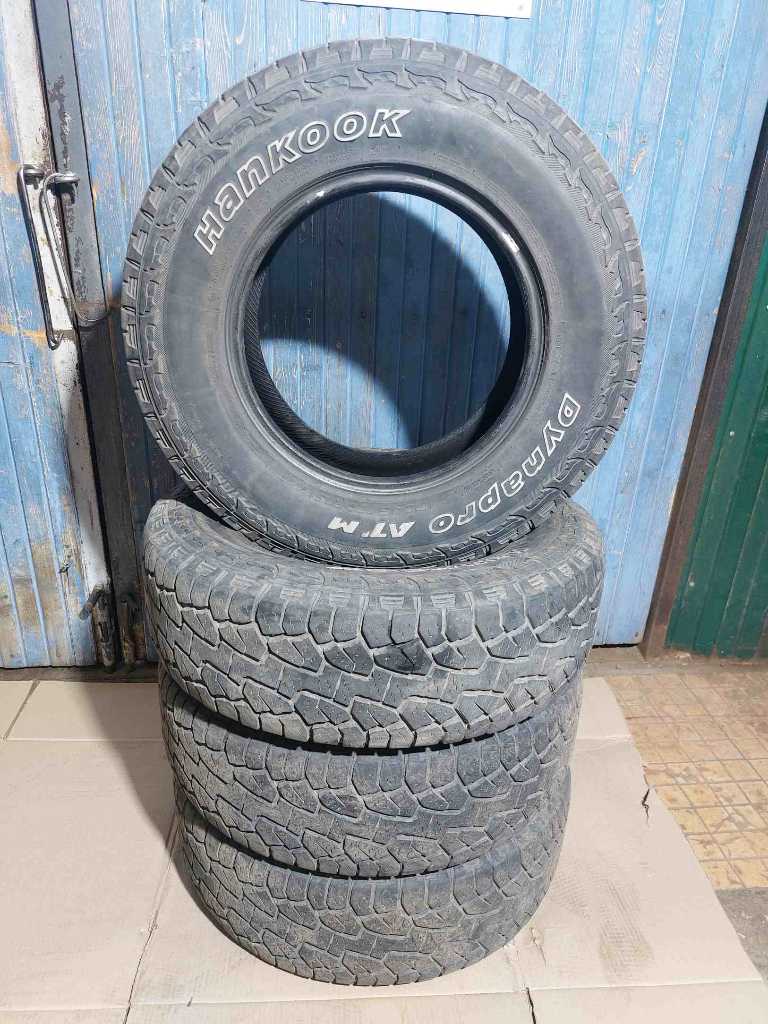 Продам 4 шины HANKOOK DYNAPRO ATM 245/70 R16 б/у, износ процентов 40-45, остаток протектора 6 мм. На пару сезонов точно хватит. Одна шина после ремонта, ремонт достаточно качественный. За весь комплект 10 тыс. рублей. Обязательное условие - самовывоз!