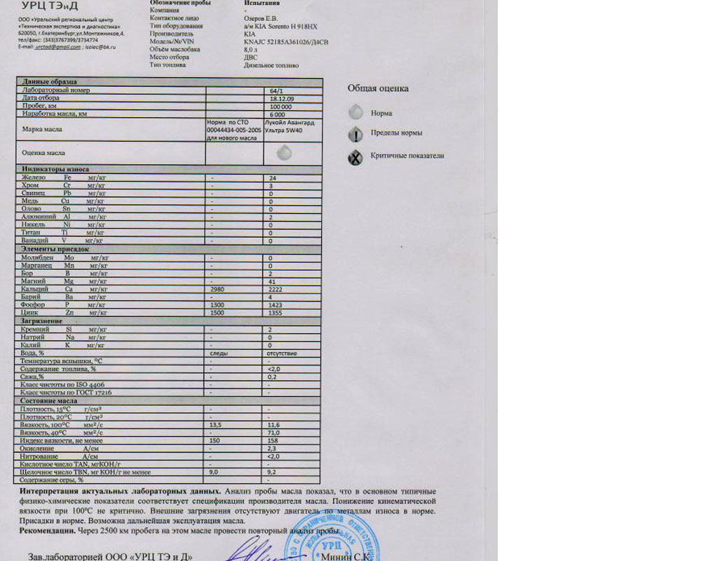 Как и обещал. Протокол испытания масла ЛУКОЙЛ Авангард Ультра 5w40.