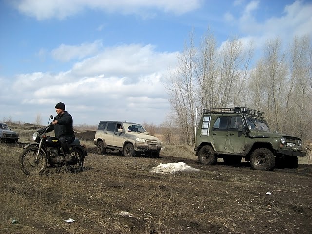 Несмотря на ветреную погоду и пасмурное небо, совместные покатушки Соренто-клуба и Легиона 4х4 в Вербное воскресенье всё-таки состоялись. Кроме "Соренто" Антона в них участвовало ещё и некое творение ММВЗ. Как оказалось, необязательно ехать 40 км от города, чтоб найти место для офф-роуда. Тихой белой завистью завидую Алексею Регион 63 -- он может так упражняться каждый день минимум два раза : по пути утром на работу и вечером домой :wink: .