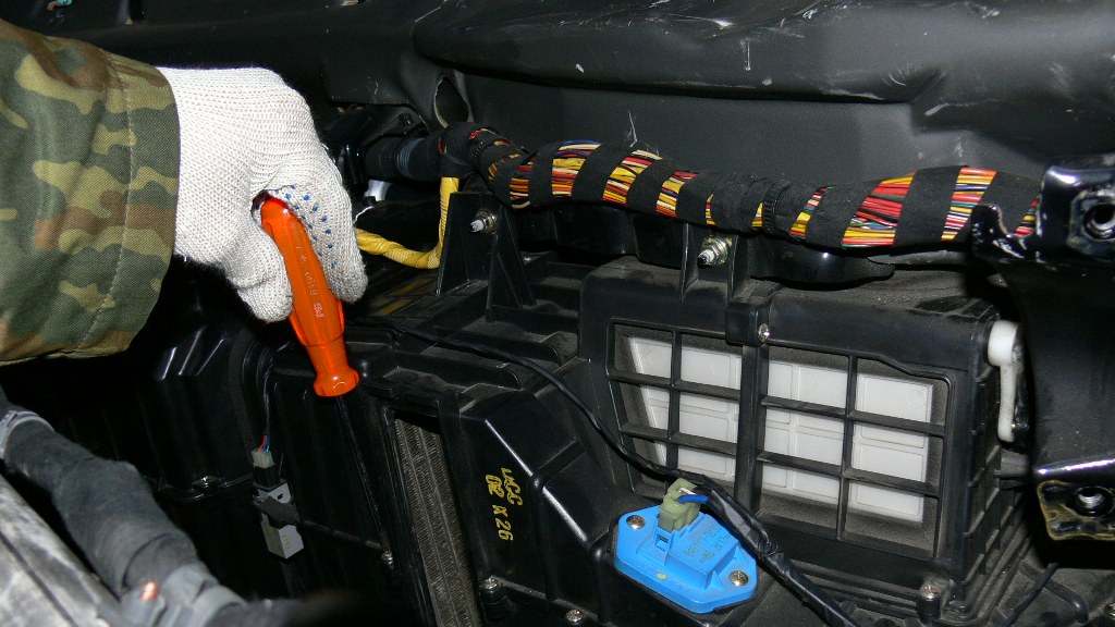 еще добавлю, короб отопителя двигая аккуратно из стороны в сторону надо вытащить из короба кондея а потом влево и вверх.