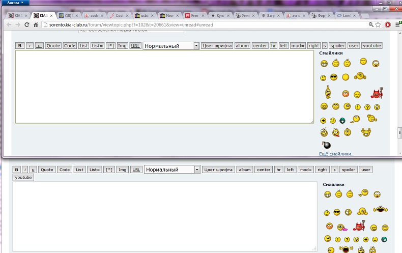 Это не говоря про кнопки BB-кодов, которые в тормозиле расплываются на весь экран.