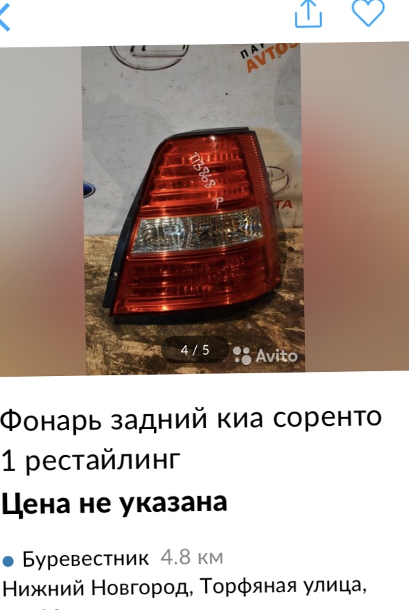 Посмотри объявление "Фонарь задний левый Kia Sorento 1 restail б/у" на Авито:
