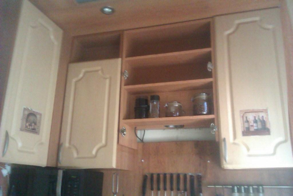 Фото шкафов. Там, где полки открытые, была вытяжка. Дверцы в наличие.