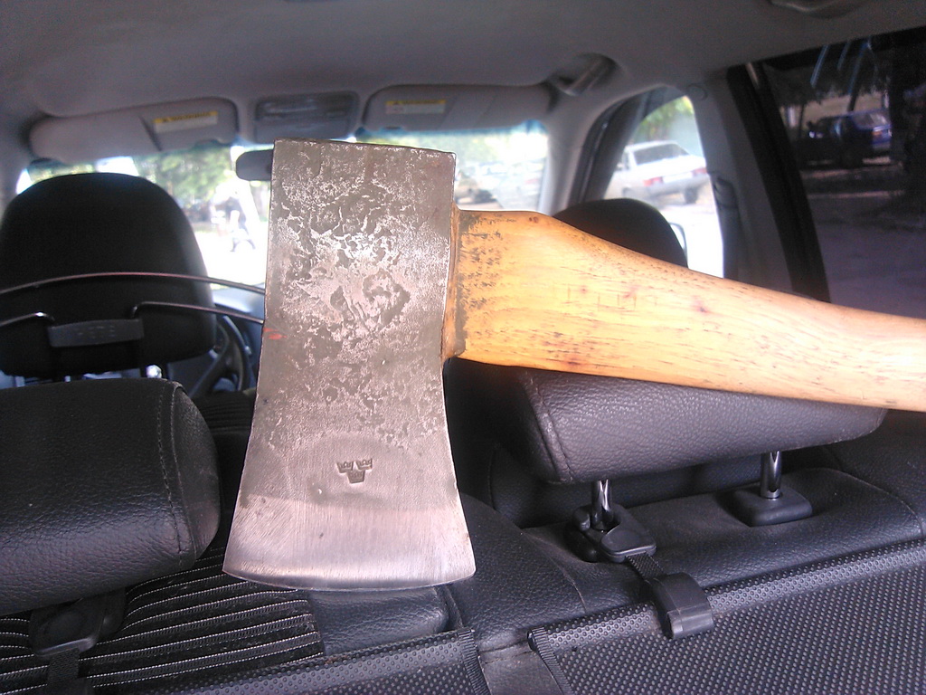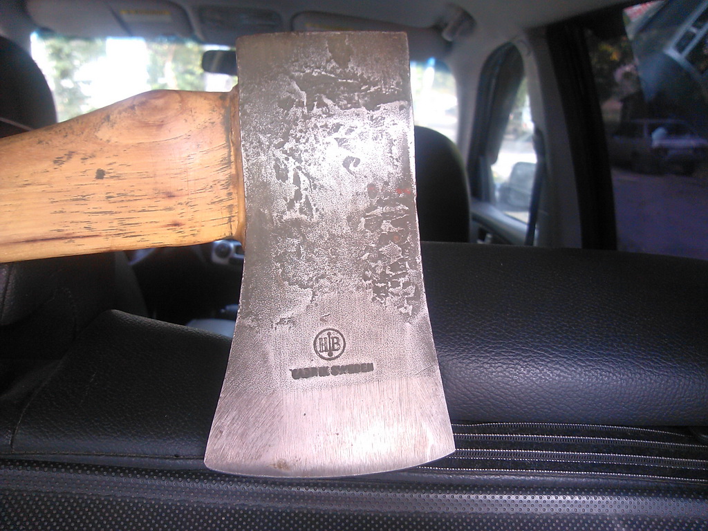 Покупал год назад, с армейской консервации, для тестирования. В топор вложился всей массой рук и того, к чему они, руки, крепятся. А именно: шлифмашинкой снял зеленую консервационную краску (тот ещё половой акт, замечу, краска была мегазлая и укрывистая, еле отпидорил). Материал рукояти-гиккори. Мне понравилась деревяха. Во-первых, не гигроскопична, т.е. не подвержена сжатию-расширению-разбалтыванию. Пропитка изначальна уже какая-то была,т.е. мои поползновения покрыть рукоять льнянкой были восприняты топорищем со смехом-масло просто блестело и не впитывалось. Тем не менее, 4 слоя нанёс, за лето пропитанная рукоять полимеризовлась.