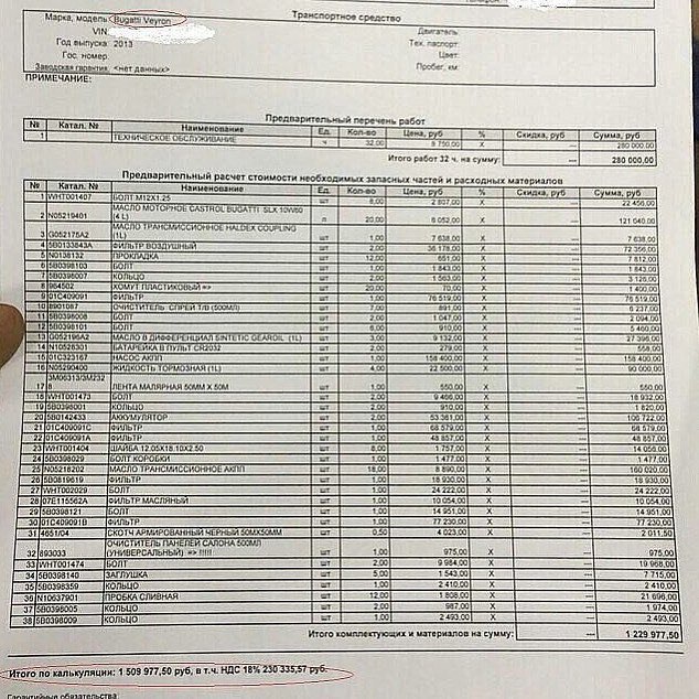 хрен знает. у буржуев ТО на Вейрон стоит около 70 тыс евр в год, вроде вне зависимости от пробега