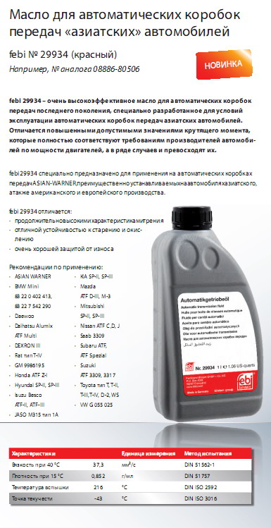 Таблица масел для 5-ступенчатой коробки, подготовленная Gubkin