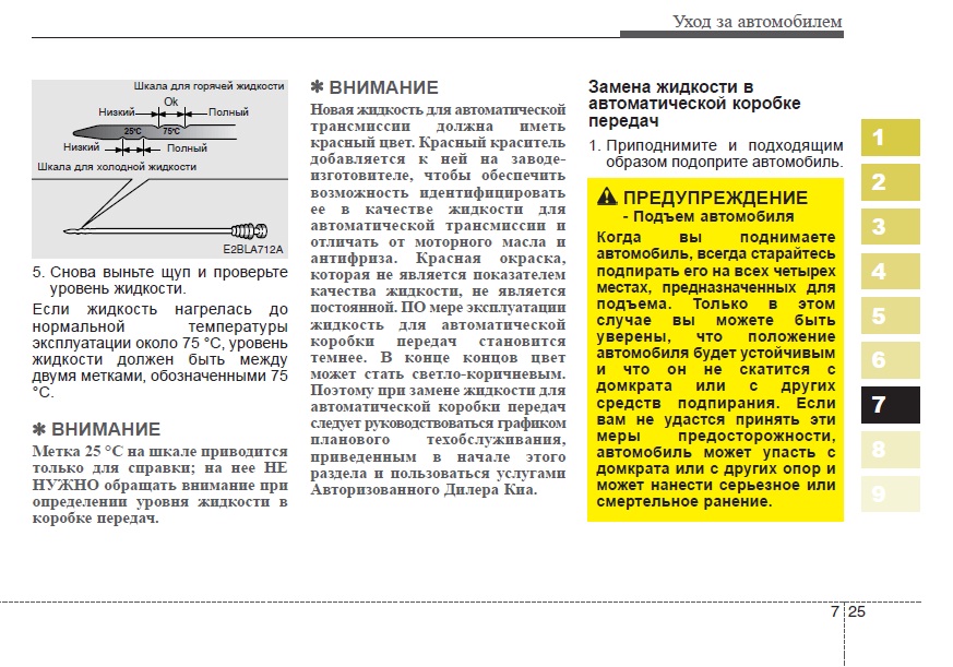 Вернуться на Р или N.Достать щуп и посмотреть уровень (не выключая двигатель). Смотреть по шкале для горячего масла (HOT).