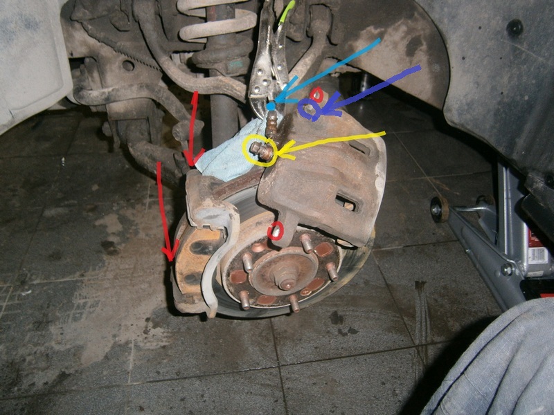 Для этого мне понадобилось: струбцина-пассатижи, набор ключей 14,8,12, шланг омывателя от ВАЗ 07(прозрачный), пластиковый стакан, компрессор, щетка металлическая, очиститель суппортов, смазка для суппортов медная, смазка для поршней и резинок(в пакетике какая-то), кисточка, наждачка мелкая, ЖЕЛАНИЕ и ТЕРПЕНИЕ