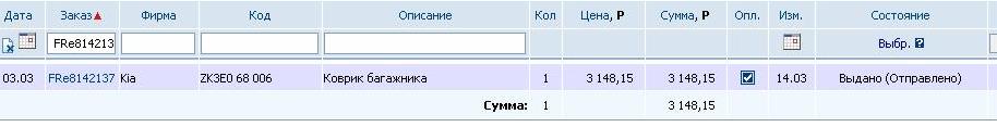 KHe8325583 Коврик багажника Kia ZK3E0 68 006 1 Снято [Не поставляется] 17.03.2010