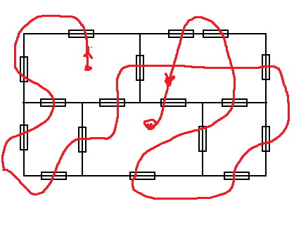 Первое условие и оно звучит так- надо зайти в здание, обойти все комнаты (выходить за пределы здания можно) и в итоге выйти из здания.