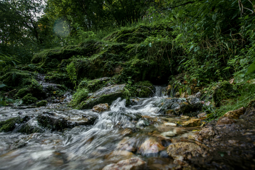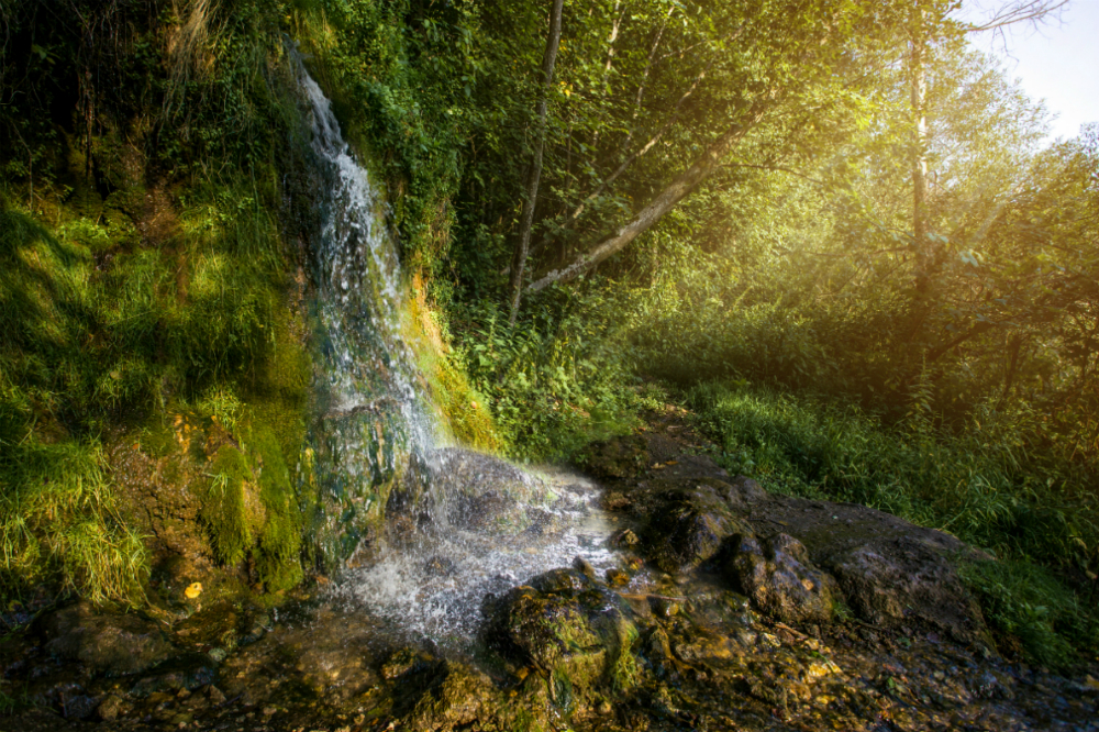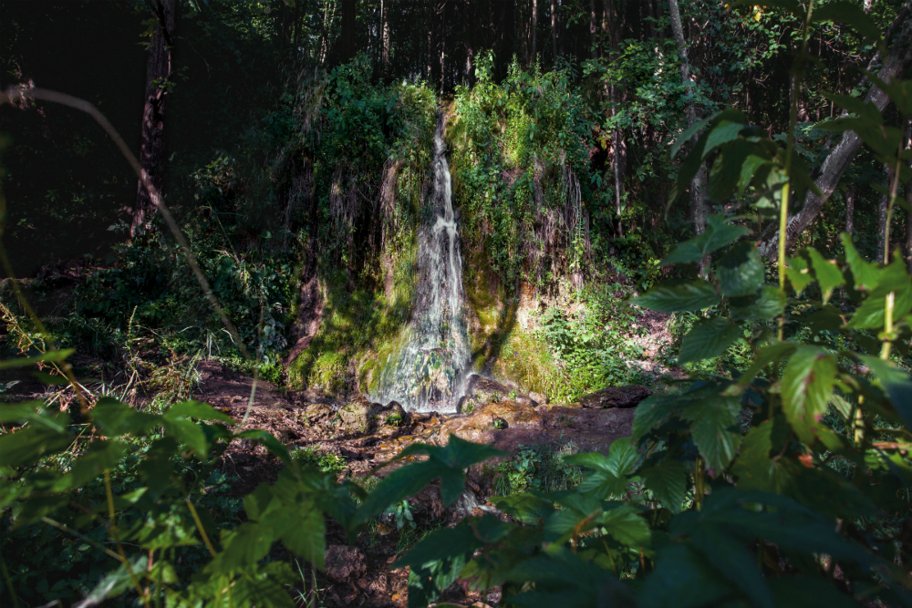 Да, в Подмосковье, оказывается, есть водопады. Почти на границе двух областей, Московской и Калужской, р. Нара сильно изгибается. На ее высоком берегу находится водопад «Радужный». Он падает примерно с трёх метров и образован вытекающим из карстового источника небольшим ручьем. Кроме него рядом каскадом бьют ключи ещё нескольких родников пониже. Их придётся форсировать по дороге)