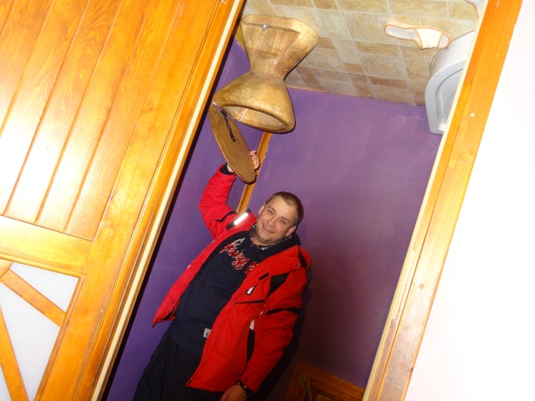 Мы не смогли уйти оттуда не отомстив, рядом со входом стоит стол и огромный чурбан, дверь открывается во внутрь, так что поставив рядом с ней стол и водрузив на него чурбан, мы наклонили пень так на дверь, чтобы при открытии он завалился во внутрь.
