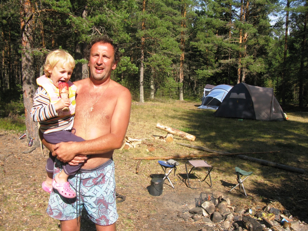 (И). (Ч)что сказать? Красота! Онега очередной раз позвала нас ещё раз приехать. 2 недели пролетели быстро. Очень переживали за нового 3-х летнего юнгу( юнга -мужского рода), но оказалас(ся) очень походным ребёнком.На катамаранах в переходы (АХ)спала как убитая ,даже когда возвращались в шторм и её волны обливали, только отворачивалась и спала до момента экстренного снятия паруса.Прошли не много ,200 км всего, но нашли отличный пляж, где стояли 3 дня. Уж очень для юнги было удобно купаться.Рыбак я хреновый, поэтому я ловил рыбаков и они делились рыбкой.Были очень удивлены встречей с двумя пенсионерами возрастом по 67 лет на байдарке 52-го года: набор из бука, только ''шкура новая ''сказали. Уже месяц по Онеге гуляют.