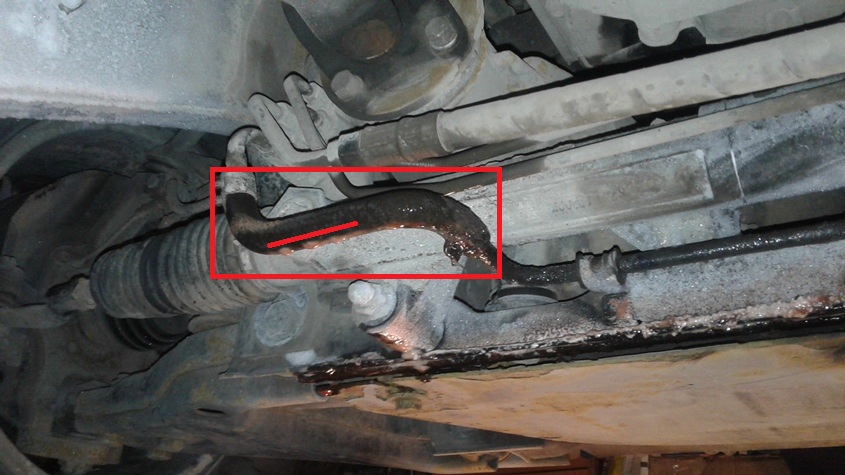 Утром по пути на работу рывки стали заметнее. Заглянул под капот, а в бачке жидкости на донышке. :( Сразу полез шланг смотреть. И точно, все сырое.