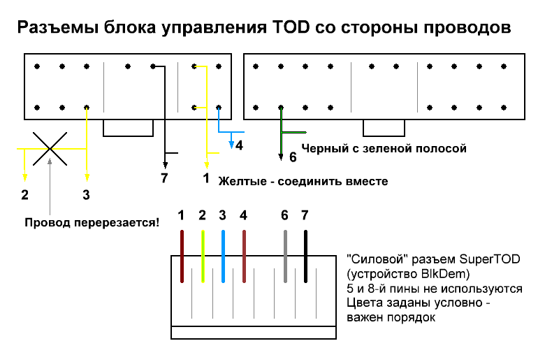 Максим думаю следует выложить в шапку схему подключения которую я выкладывал ранее, так как и у меня и у других вновь открывателей Супер Тода, возникает вопрос подключения проводов непосредственно по фото, что крайне неудобно, так как не совсем всё видно. И предыдущий первопроходец то же писал -"Единственное пришлось очень внимательно рассматривать картинки, на разных страницах, сравнивать их и пытаться понять, какие же все таки провода резать и к каким присоединяться" цитата из сайта https://www.drive2.ru/l/6758514/?m=1221 ... a122172183