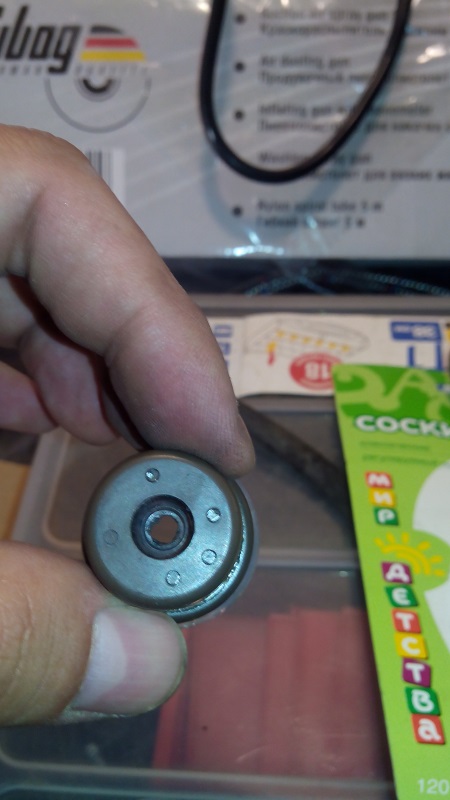 . Ставим сосок внутрь манжеты и обрезаем. Родную уплотнительную резинку с манжеты убрал, нижняя часть соски подворачивается и становится уплотнителем. Дырочку в соске делал паяльником с тонким жалом. На фотках ниже соска другая, ее убрал т.к дырочка получилась большая.