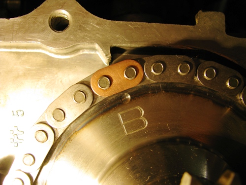 Собственно, на текущий момент имеем, что нижние цепи стоят по меткам, но чтобы выставить их пришлось крутить коленвал без верхней цепи. Собираем дальше, выставляя по меткам верхнюю цепь или лучше обратно провернуть коленвал на целый оборот и только после этого ставить верхнюю цепь?