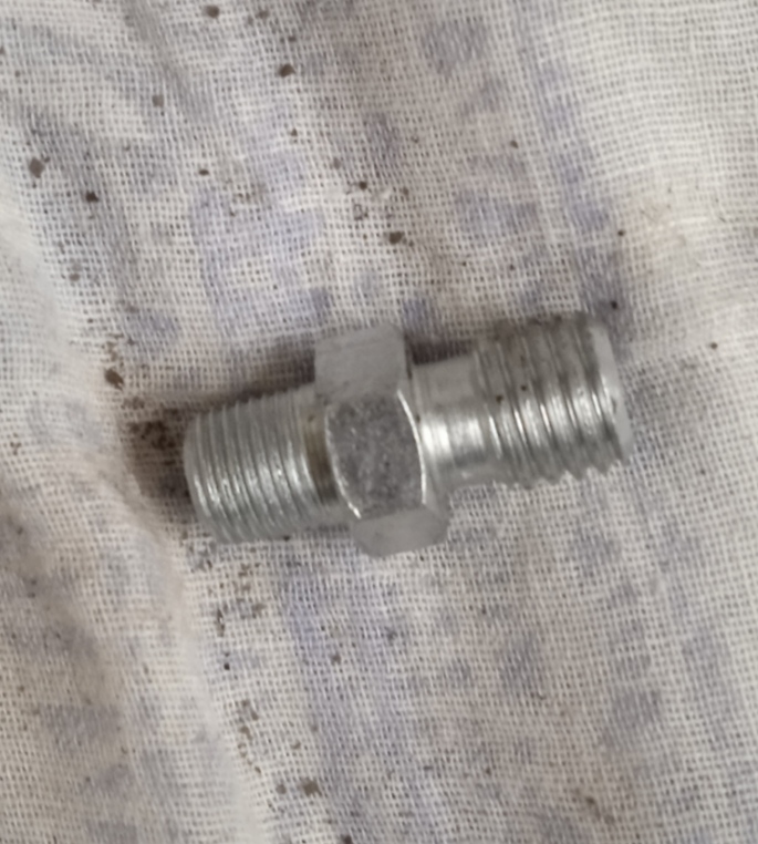 Кто-то тут писал, что вкручивал штуцер на 8. С трудом, но нашел такой. А он в отверстие со свистом пролетает. Подобрал переходник с М10 на М14. Со стороны М10 резьба мелкая - 1. Купил метчик. Нарезал резьбу. Загнал с фумкой. На вторую сторону шланг через фумку.