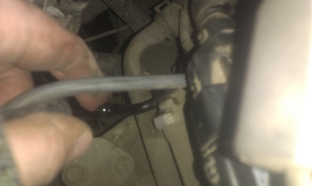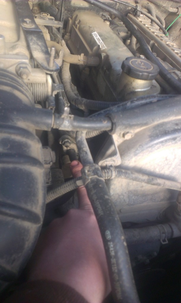 вот показываю где этот шланг находиться(не пытайтесь отсоединить где указываю на него пальцем(т.к это трубка в районе двигателя и рампы не отсоединяеться.а где колодка спокойно нажатием пальцев сниметься