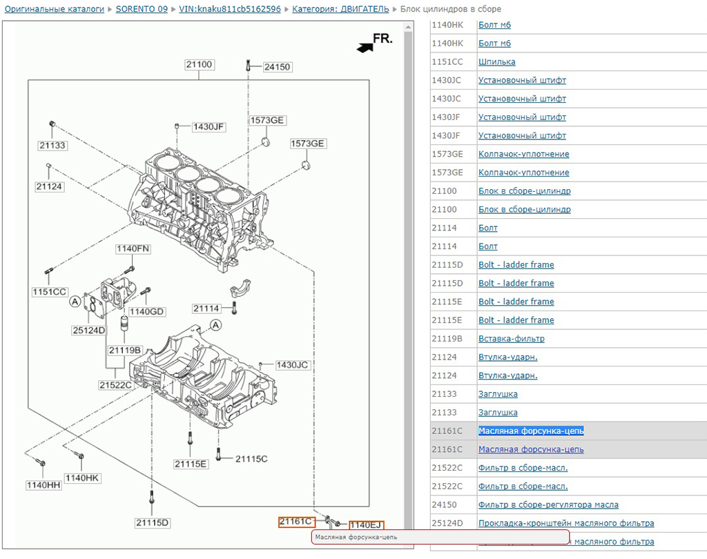 HYUNDAI-KIA 211612G000 – Кронштейн блока цилиндров ---написано так, на самом деле "Масляная форсунка-цепь"