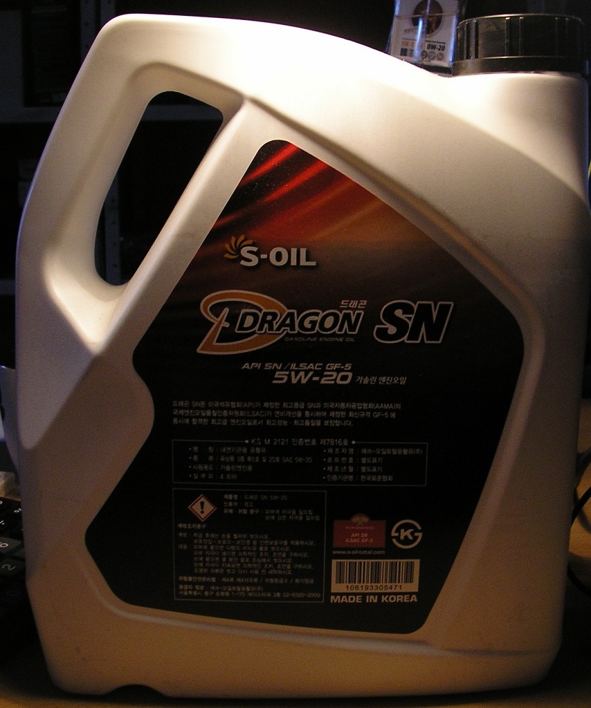 По теме, вот такое масло купил: DRAGON, 5W20 SN, GF-5, неплохой ИМХО антикризисный вариант...Электронный адрес на канистре s-oil-total.com. Значит с Тотal работают корейцы, хорошо это или плохо, не знаю... Если кто-то выбирает "тридцатку", то может кому пригодится, вот номер для заказа DRAGON 5W30 DSSU5W30GXOSN04 , надо мониторить инет магазины, у нас канистра "тридцатки" по 1500 р. ...