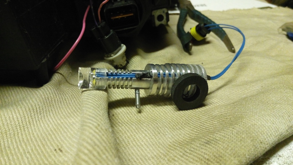 Установленный радиатор со светодиодом в штатное место габаритной лампочки.
