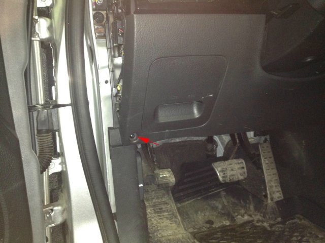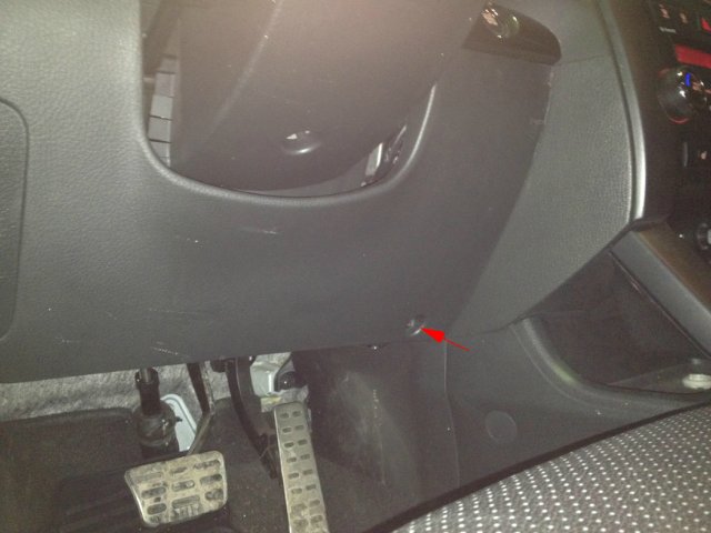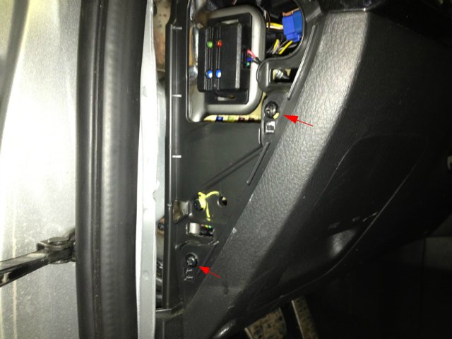 4. Отворачиваем два самореза, с торца (под лючком) и два самореза на лицевой поверхности подрулевой облицовочной панели