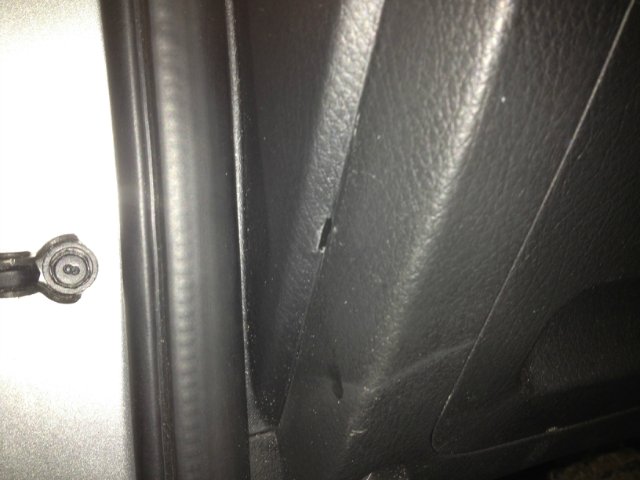 2. Снимаем уплотнитель на вертикальной, петлевой части проема водительской двери.