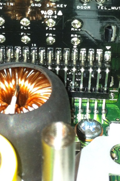 Что касается самого видеосигнала - если подать видеосигнал на указанные на картинке пины, его не видно в режиме "задний ход", но можно нажать кнопку MEDIA и тогда включится "Вспомогательный вход" и там будет это изображение. Что характерно - до того, как я собрал и разобрал магнитолу, нажатие на эту кнопку не давало такого эффекта, если не было DVD в слоте - то ничего не происходило вообще.