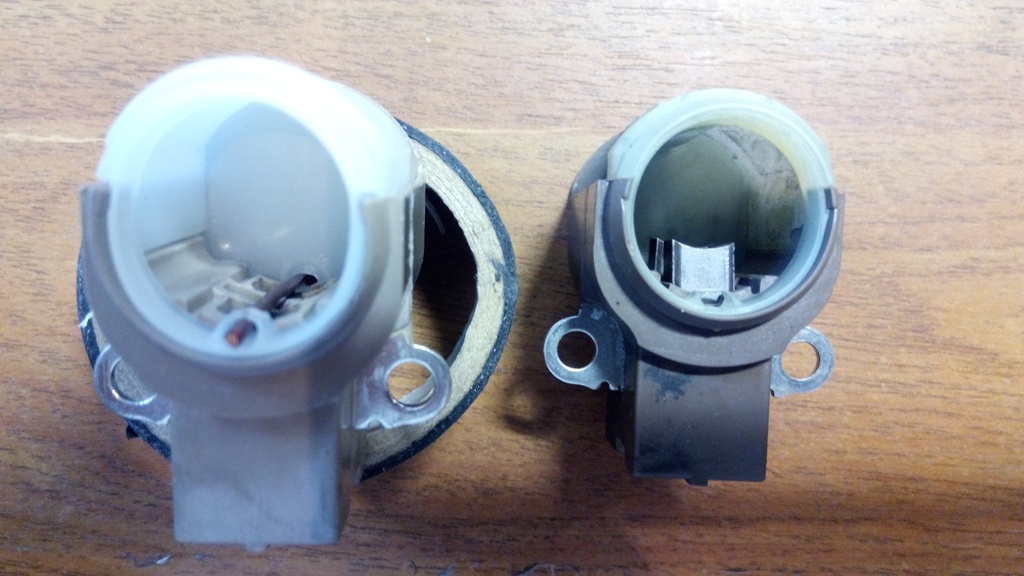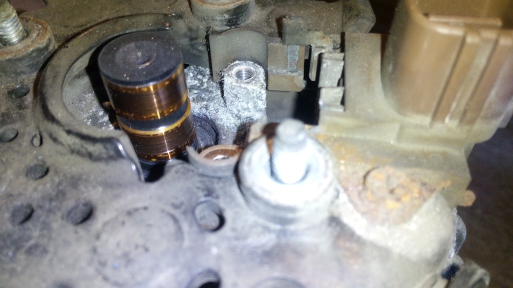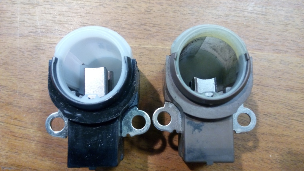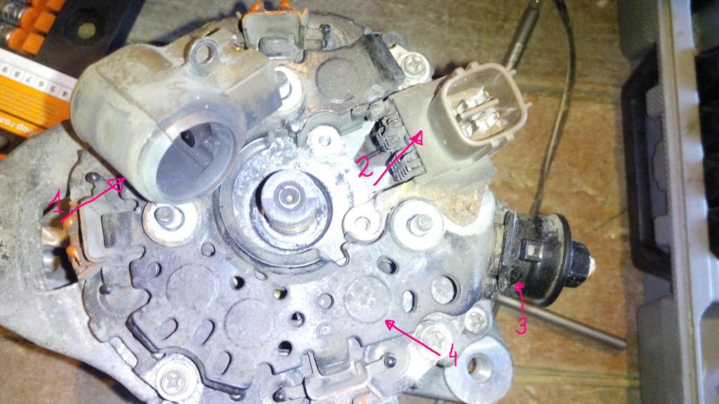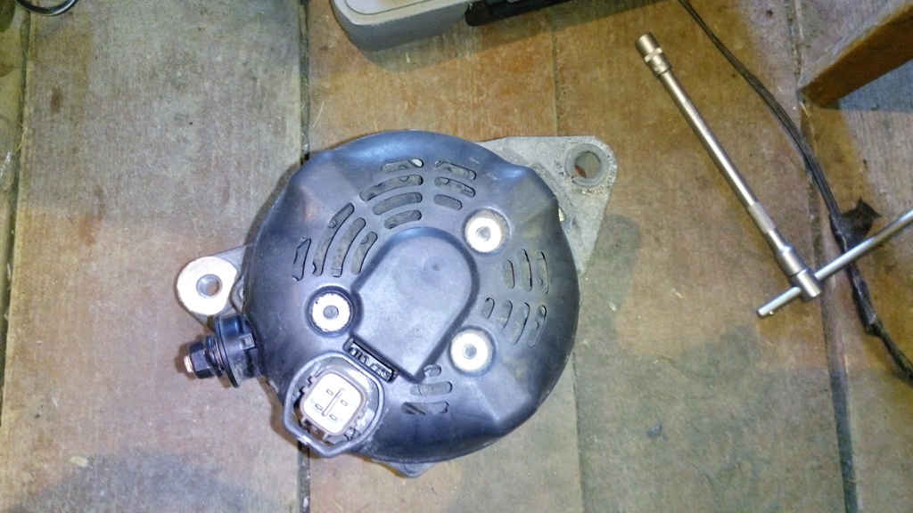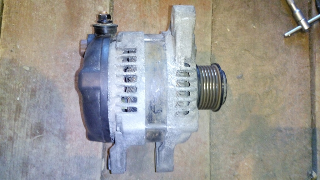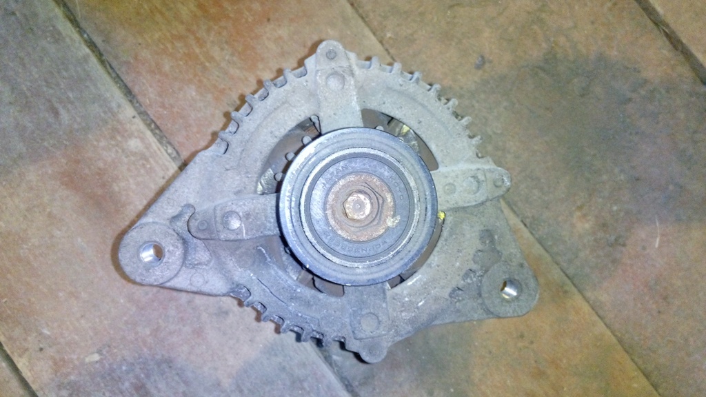 При пробеге 80000 км. решил проверить состояние щёток генератора. А т.к. в это время была разобрана правая часть подвески, то доступ к роликам и ремню был открыт. Для удобства снятия и вынимания генератора, необходимо слить тосол и снять верхний шланг радиатора. Отсоединить несколько разъёмов, и я для удобства снял гидроусилитель. Снимаем в следующем порядке. Сначала снимаем приводной ремень, откручиваем верхний болт генератора на 14 и ослабляем нижний на 14. После этого выдёргиваем покачивая, от двигателя к радиатору, генератор. Далее аккуратно вынимаем генератор наверх. Разбирать полностью я генератор не стал. Подшипники крутятся мягко, обгонная муфта работает. Решил только заменить щетки. Они меняются узлом, цена от 130 руб. до 300 руб. Установка производится в обратном порядке. Сделал несколько фото. Может кому пригодится.