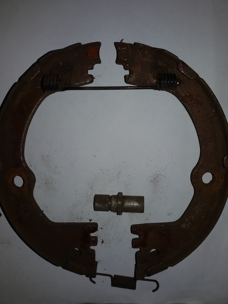 . Подумал и решил, что причина может быть в колодках, разобрал, от одной одни осколки, другая целая выпала. Вот думаю, что было-бы если-бы ехал 100 по трассе, или зимой по льду... Колесо по ощущению сильно заклинило, потом колодку сломало.