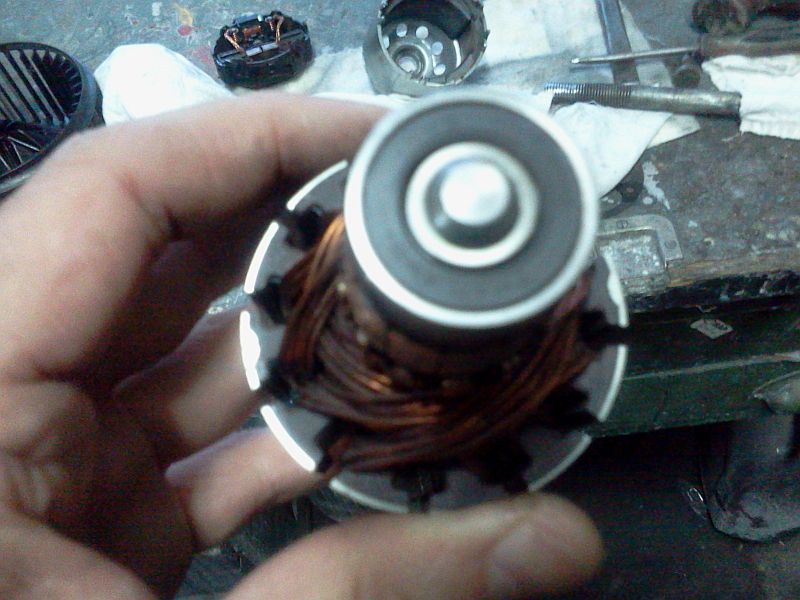 Вся крыльчатка и пластиковый внешний корпус были уделаны какой-то смазкой (той наверно за которую я заплатил денег), на корпусе следы грубого вскрытия, какой-то мощной отверткой, сломанный стопорный зуб на разъеме... и... как выяснилось позже сухой подшипник. Вот уроды