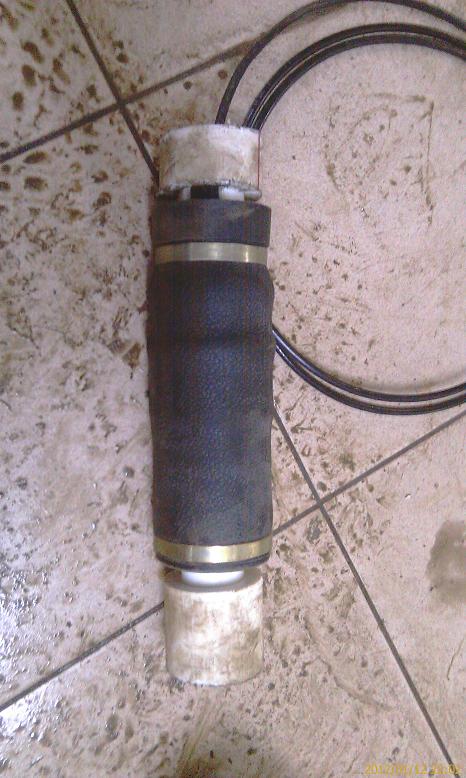 К данным баллонам пришлось соорудить проставки, сверху и снизу. По диаметру хорошо подошла пластиковая труба водоснабжения диаметром на 70 мм (если не изменяет память). Также был приобретен коннектор (83мм) для труб. Для спайки двух труб 70-го диаметра. Разрезал его пополам, поперек. Разрезал одну сторону каждого, полностью. Получилось, что этот коннектор может разжиматься на больший диаметр + 5, +10 мм.