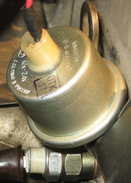 Через делитель напряжения (+подстроечный переменный резистор) снимаю напряжение на выходе с датчика давления масла от ВАЗ.
