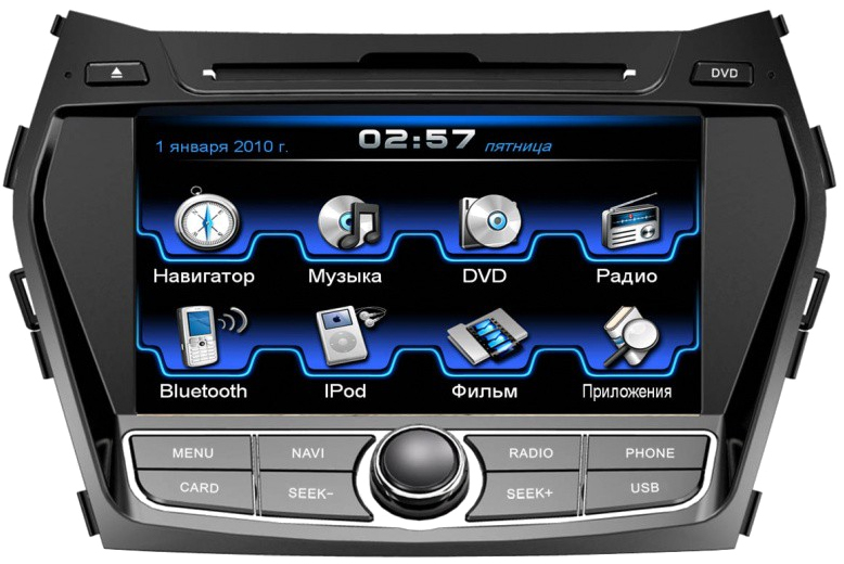 Модель HYUNDAI Santa Fe 2013+ подходит только для автомобиля, в штатной комплектации которого нет оригинальной штатной навигационной системы. Поддерживает оригинальную штатную камеру заднего вида.