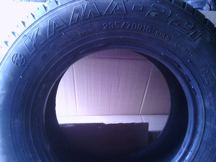 Занедорого продам Каму-221, 235/70 16, 5 штук, состояние четырех близко к "муха-не-сидела", 1 новое абсолютно. Снята с Патриота пикапа через 2 недели после покупки в прошлом году.