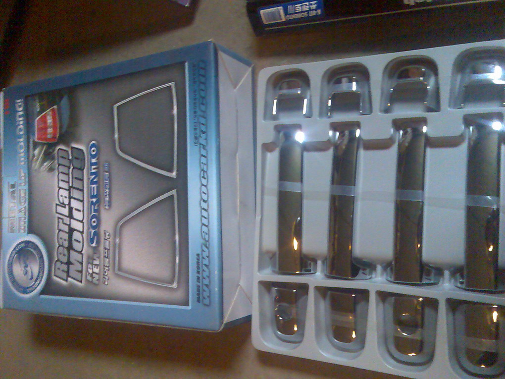 есть на соренту 06-09 хром на ручки дверей и на задние фонари (производство Корея, идут как оригинальный аксесс).