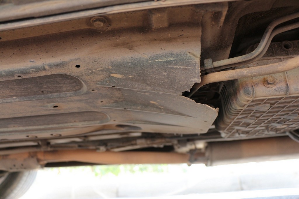 13. Заниженный клиренс, причем свисает все под днищем. Защиты никакой от пузотерки. Ну как так? Еле-еле паркуюсь к бордюру и бьюсь об него защитой. На Иксе въезжал спокойно в этом месте. А зачем на переднем бампере мини «брызговики-ограничители» в виде недоюбки Каптивы? Внизу ужасно, что творится, все ржавое и висячее без особых усилий на защиту. Точно для корейских дорог машинка.