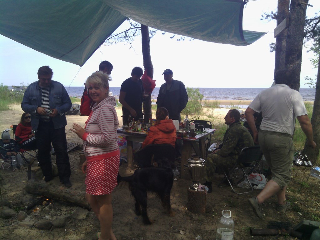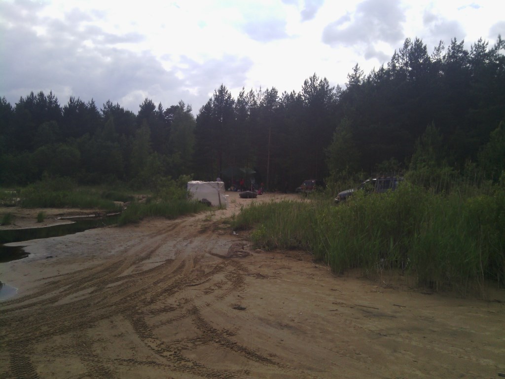 Посетили встречу дружественного клуба, ехали по точкам, координаты соответствовали, после съезда с асфальта, по лесной дороге, начало потряхивать, и продолжалось это около 40 минут, кроме тряски было с 10 интересных луж и бродов ручьев, проехали без видимых потерь, если не считать смытого переднего рег. знака, из приключений по пути была утопшая газель, изумленный проходимостью соренто экипаж патфингера и волны, накатывавшиеся на капот, при неспешном форсировании луж и бродов. Радушная встреча в лагере спортиков была приятным завершением пути. Приехали из солнечного дня с 23 градусами в приладожье с температурой в 14 градусов, одетые в сарафаны и шорты..., через час начали подмерзать и решили ретироваться до дождя, который спрогнозировал с удивительной точностью синоптик спортедж-клуба.
