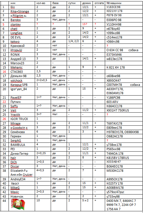 Добрый день. Сегодня отправили деньги, предоплата за проживание (Ольга оповещена). Подтверждаем участие!!! Четыре экипажа, номера машин: