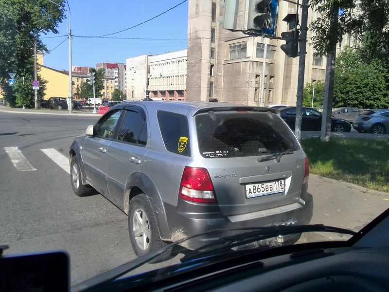 Видимо на скорости не увидел, а то уже в привычку входит проверять у всех Сориков задние боковые стекла на налачие клубных гербов :D
