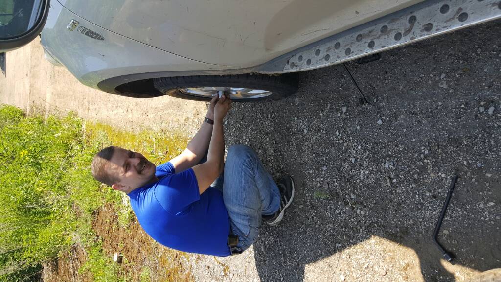 чтобы доехать до лагеря, пришлось экспроприировать запаску у Макса, так и отправили Макса с Алкой обратно без запаски...