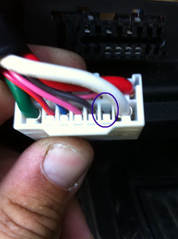 3. Вынимаем из него коннектор и наблюдаем, что провод №10 как-раз отсутствует, т.е. цепь разорвана, DRL деактивирован.