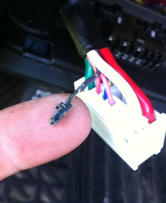 4. В идеальном случае надо раздобыть маленькую клемму «мама», которая должна здесь стоять (на фото соседняя клемма, аналогичная отсутствующей),