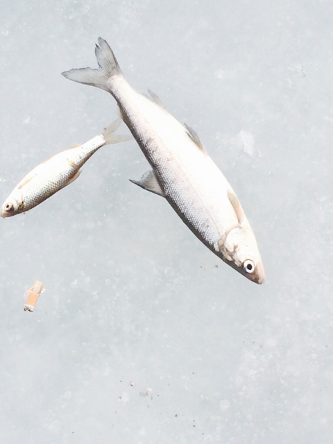 Клев был отвратный, три холостых взмаха на поставушках и трудовые рыбки всетаки оказались на льду!!!