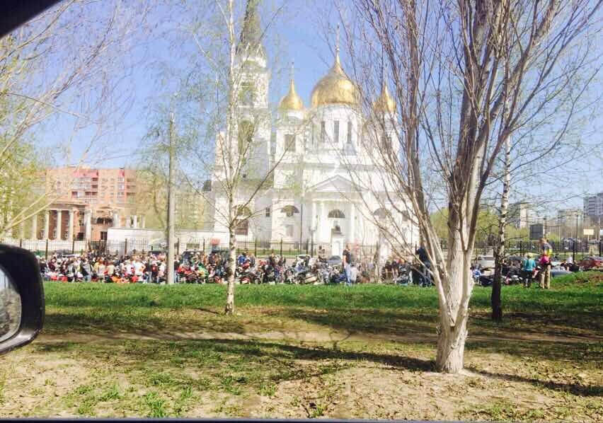 К сожалению в этот день было пасмурно и периодически даже шёл дождь. Может быть поэтому у храма не было пикета сторонников восстановления бассейна им.Москвы. Не удалось покататься и на прокатных велосипедах.
