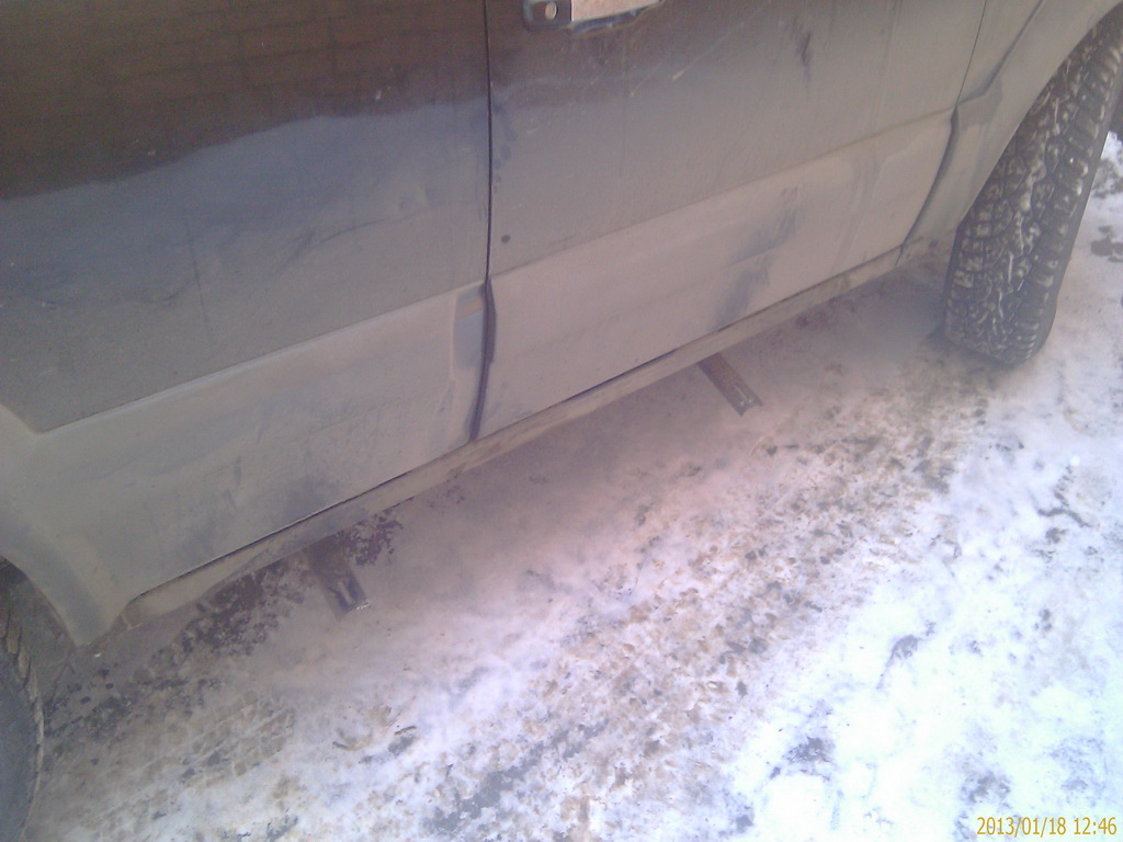 Снять подножки было сложно. Подножка крепится двумя Г-образными креплениями к кузову, снизу. Плюс еще саморезы под дверями.