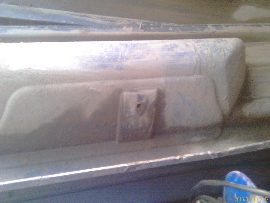 Крепления пистонов внизу накладки. В области двери и подножек.
