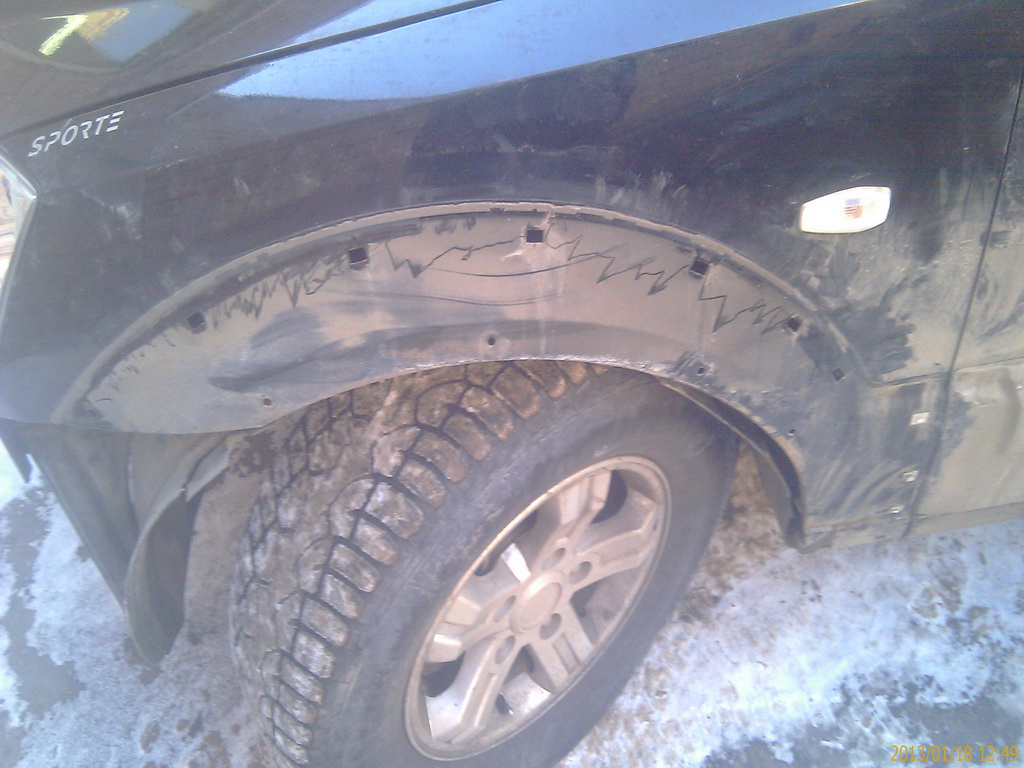 Заодно отодрал накладку переднего левого крыла. Пытался аккуратно, да не вышло. Часть пистонов вышло, а часть сломалась.