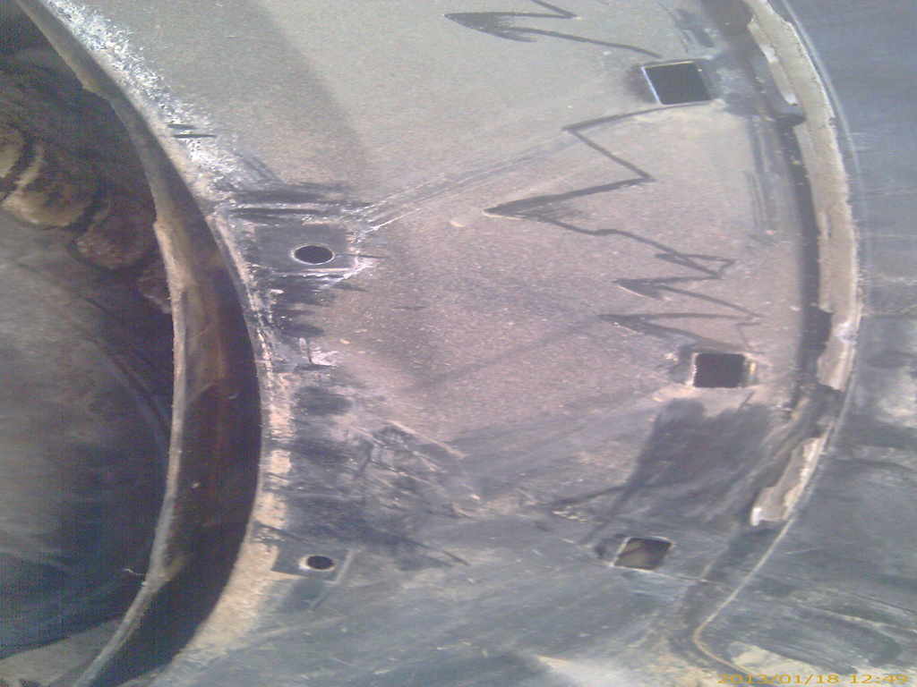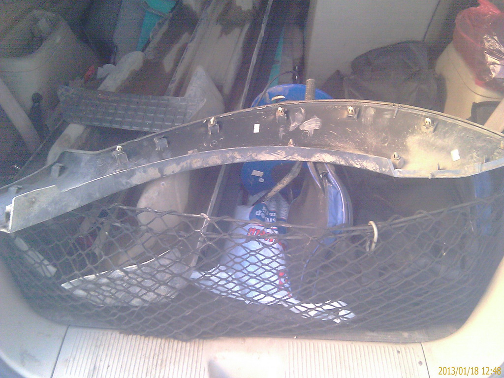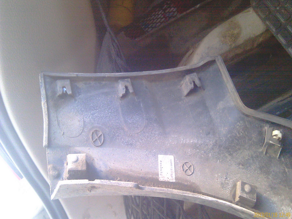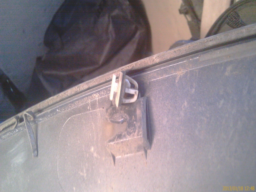 Заднее крыло после снятия накладки. Пистоны все поломались. Не церемонился с ними.